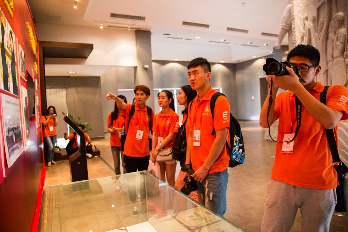 参观中,队员以情景问答的方式细数发生在农村改革道路上的家国往事。何修豪同学以50年代流传于凤阳一带的民谣,介绍了当时当地农民生活的窘境。张书朋同学借助一张张老照片,勾勒出凤阳县一步步走上“大包干”道路的经过。姚想同学在馆内“时光轴”展厅,回味自1978年以来,中国农村改革道路的漫漫征程。程倩倩同学则以名词解释的方式为队员们诠释了“大包干”和“大包干精神”的内涵,即解放思想、求真务实的精神,敢闯敢试、勇于创新的精神,自力更生、艰苦创新的精神,风险共担、诚实守信的精神,尊重民意、以人为本的精神。