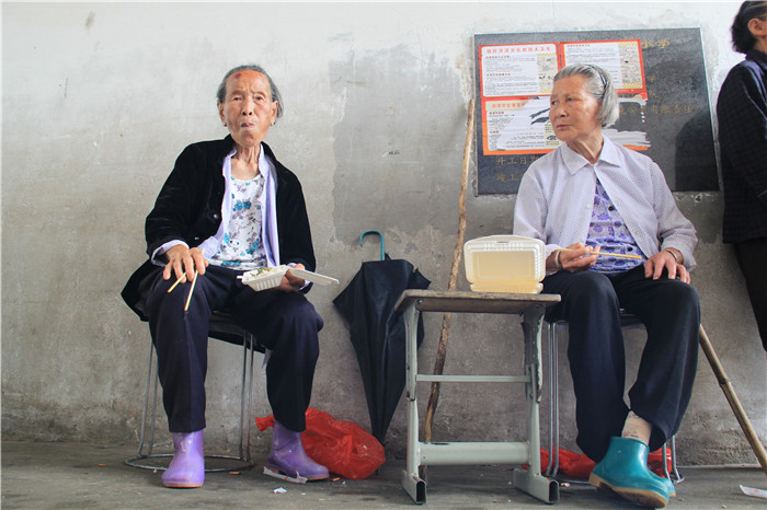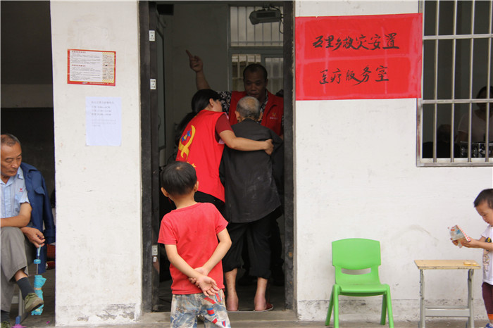 我们见到她的时候,她和另一名志愿者钢材哥搀扶着一位弯腰驼背、颤颤巍巍的老爷爷寻找他的住处,因为爷爷去了厕所后不记得自己住在哪间教室。她焦急地向旁边的人询问,找管理人员要登记簿查清老人的房间。