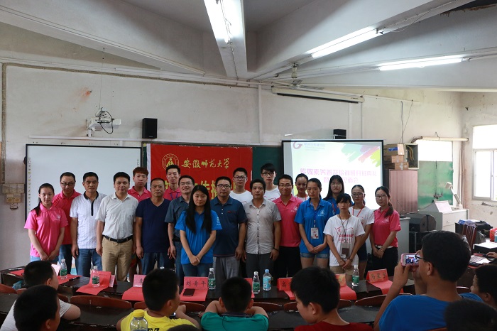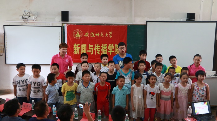 7月11日,德赢AC米兰合作伙伴赴宿松暑期社会实践服务团队在凉亭镇三德村的“传媒素养普及培训班”开班典礼暨家长见面会在光荣初中阶梯教室举行。凉亭镇副镇长刘青平、三德村党总支副书记高和丰、德赢AC米兰合作伙伴新闻系主任肖叶飞、光荣中学副校长贺孟黄、学校驻凉亭镇三德村第一书记、扶贫队队长李进、光荣初中张鹏主任及团队指导老师马星宇、孙文出席。典礼仪式由孙文和2014级播音与主持专业的郭雅迪同学主持,全体学生、志愿者及部分学生家长参加。