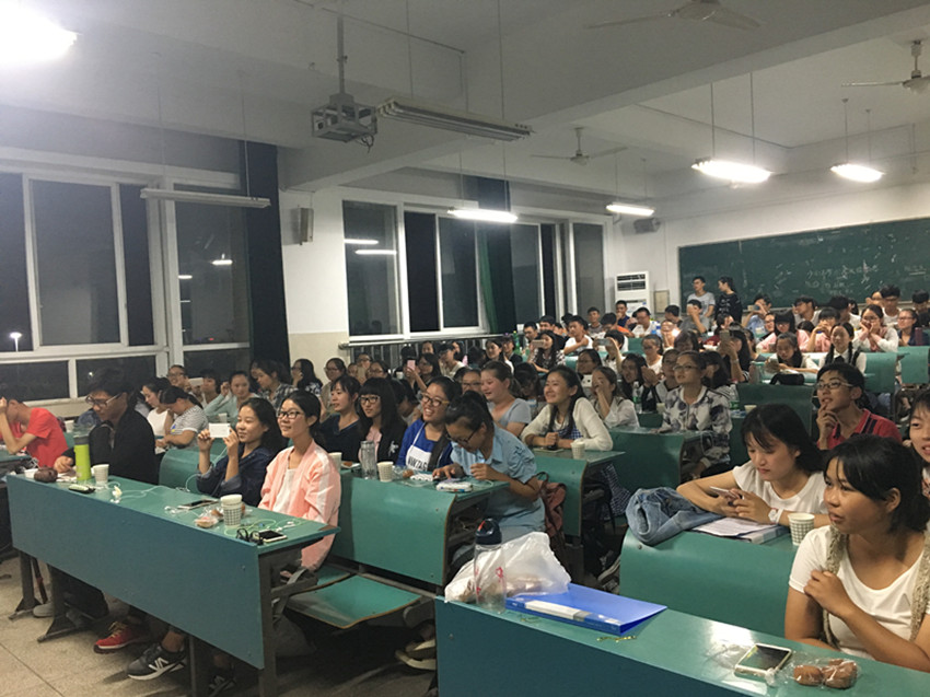 9月15日,农历八月十五日晚,天空阴沉,下着小雨,但教室里却欢笑满满。2016级新闻学、网络与新媒体,两大专业、三大班级140名同学和辅导员张雁老师欢聚一堂,共度中秋。