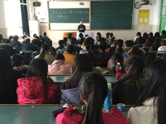12月30日下午,2015级空乘专业在2010402教室召开了学习经验交流会暨期末考试动员大会。本次会议由辅导员张珺琢主持,2015级空乘专业全体同学参加了本次动员大会。面对入校以来的第一次期末考试,不少同学心中还有些没底,针对这一情况,辅导员张珺琢还特意邀请了2014级空乘专业的张雅玲、汪玉洁、刘格格、程龙等4名成绩优异、表现突出的学长学姐向同学们传授备考经验。