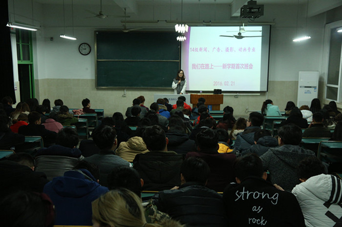 “这是我们的时代,我们活在这里,活得如此认真而努力。我们坚信,生活不是拳击手,我们也不是橡皮泥。我们活在这里,用独有的坚持守望麦田,用我们自己的方式春暖花开。愿意奋斗,每个人都能站在舞台中间;相信明天,世界会因我们的努力而改变……”团中央书记处第一书记秦宜智在《2016,我们一起携手,走向明天——给青年朋友们的一封信》中如是说。新学期伊始,来自德赢AC米兰合作伙伴2014级新闻、广告、动画和摄影四个专业的全体学生欢聚一堂,在教学楼2010505室共同召开新学期第一次班会。班会由辅导员孙月婷老师主持。