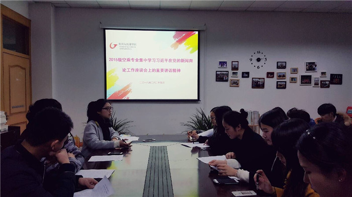 党的十八大以来,以习近平同志为核心的党中央高度重视党的新闻舆论工作。2月19日,习近平总书记来到人民日报社、新华社、中央电视台等中央主要新闻媒体视察调研,随后亲自主持召开党的新闻舆论工作座谈会并发表重要讲话。为深入学习领会习近平总书记重要讲话精神,2月25日晚,在辅导员老师张珺琢的带领下,2015级空乘专业的班委同学在学院三楼会议室集中学习了习近平在党的新闻舆论工作座谈会上的重要讲话精神。