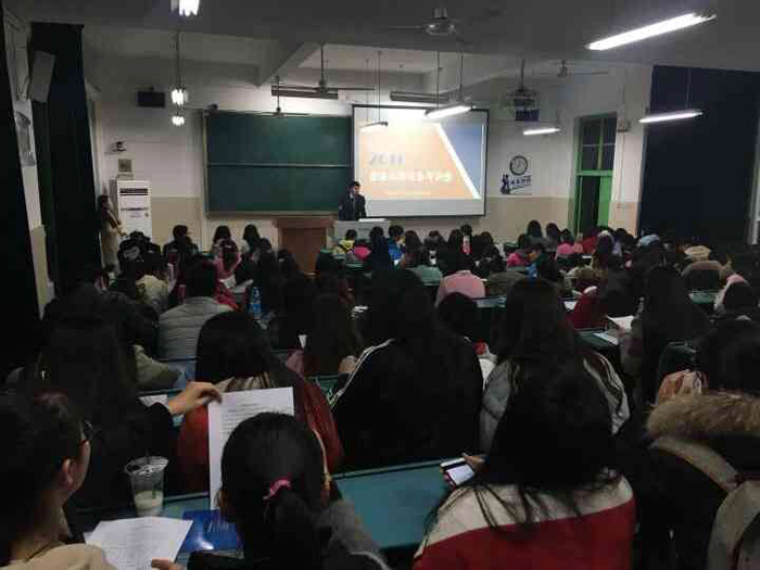3月4日晚,播音班第三团小组及第四团小组则结合自身专业特色在2040304教室向同学们义务展开普通话测试培训活动,帮助广大同学能顺利通过普通话等级考试。他们提前在大一新生群里发布了培训通知,吸引了其他专业近150名同学前来聆听。班长殷武和副班长邹升浩事先准备了普通话教学的ppt,向大家详细讲解相关的发音技巧。除此之外,主讲人邹升浩还告诫大家考试的时候要注意掌握合适的语速,用清晰响亮声音字正腔圆地去读出每个汉字。最后,他们还向同学们发放了自己整理的练习资料,一对一地对在场的其他同学们进行讲解与分享。