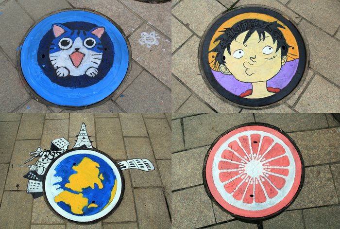 3月5日下午,广告学专业和动画专业的同学们则对东门附近建筑工地旁的井盖进行了装扮。一个个圆形井盖在同学们的多彩的画笔下装扮成了不同风格的图案,有雄伟的建筑模型、可口的红柚、还有调皮的动画“路飞”形象。该活动本着“学雷锋日,美化校园”的初衷选取一些既可爱又能传播正能量的图案进行设计,旨在美化校园传播正能量。据了解,由于经费有限,工作量较大,他们只选择了建筑工地旁的井盖进了美化。动画班同学张继敏说到,“之前也有学长学姐做过,我们不想美化井盖的活动流于形式,只要条件允许,我们想把全校的井盖都扮靓起来!”