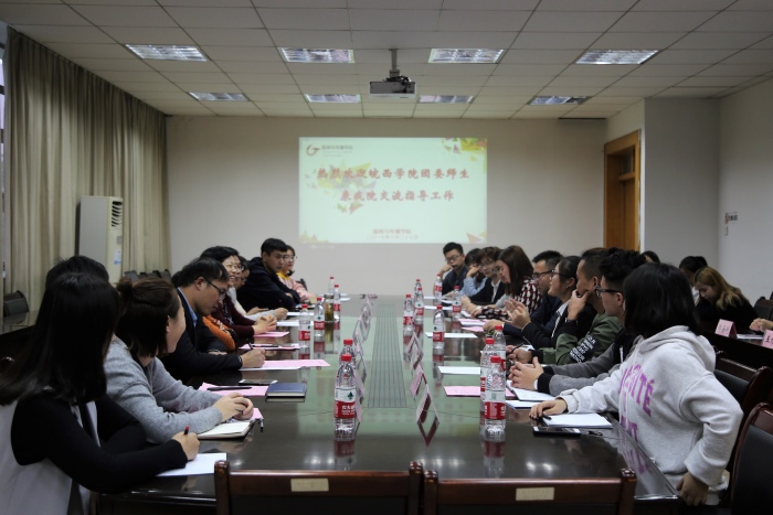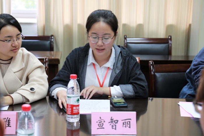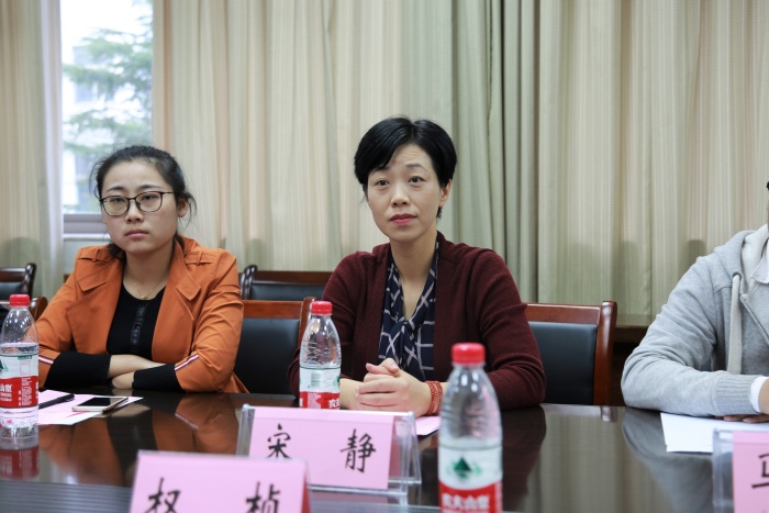 宋静在座谈会上向兄弟学校的师生来我院交流表示热烈欢迎,她介绍了学校和学院的相关基本情况,着重就团学工作和校园文化阵地及载体的建设等做了详细介绍。