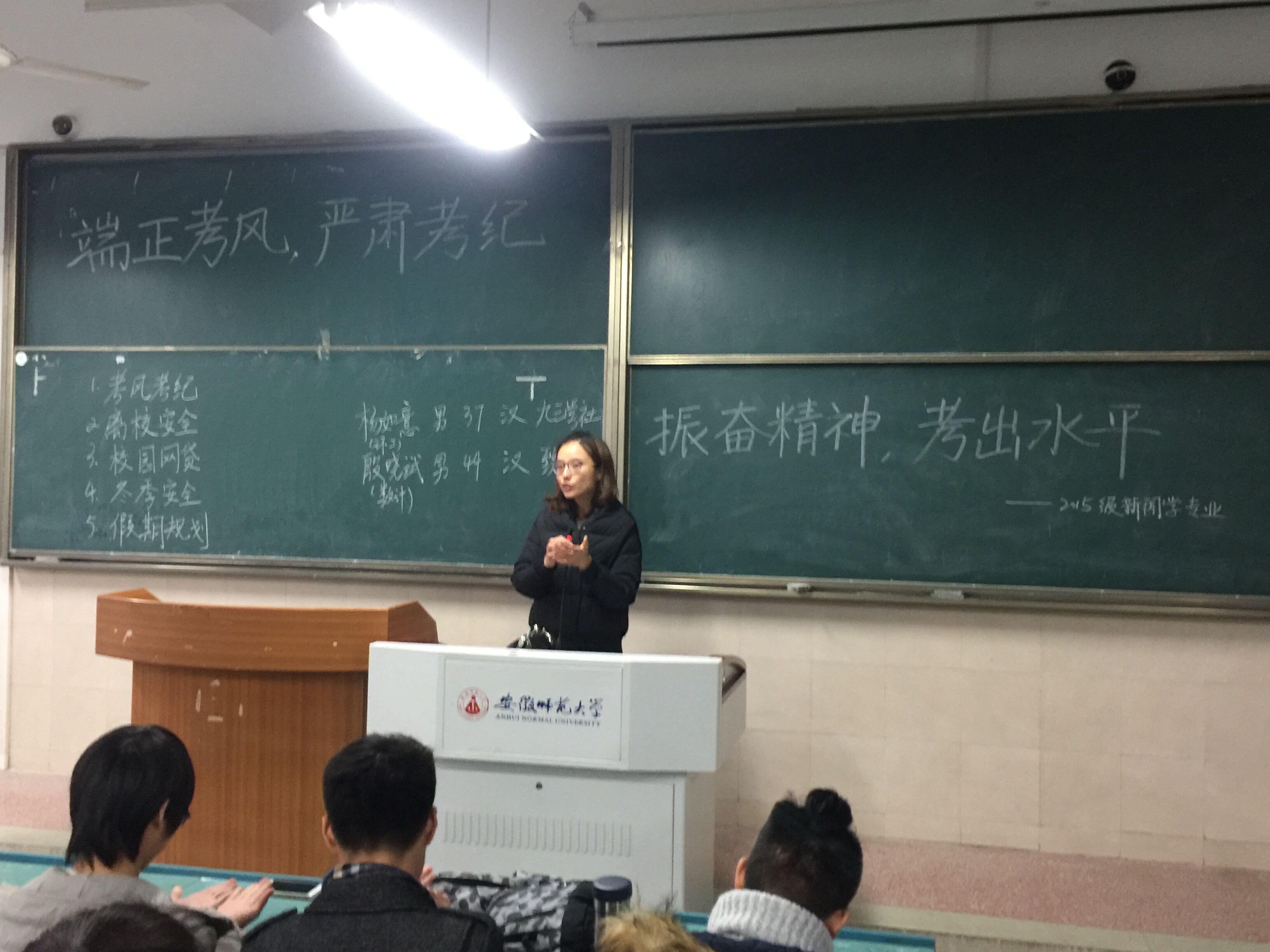 12月26日下午四点,德赢AC米兰合作伙伴2015级新闻学专业、网络与新媒体专业两个专业在行政楼2050301教室召开了期末工作布置会,会议由辅导员张虹主持召开。