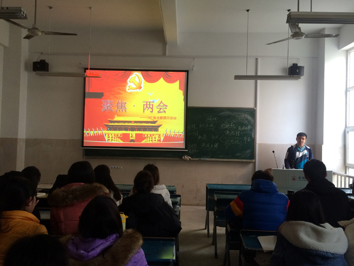 为深入学习“两会”精神,增强当代大学生的思想政治理论素养,3月20日下午,14广告班开展了“深入贯彻学习两会精神”的主题班会,会议由团支书杨添凯主持,辅导员孙月婷与全体同学共同参加。