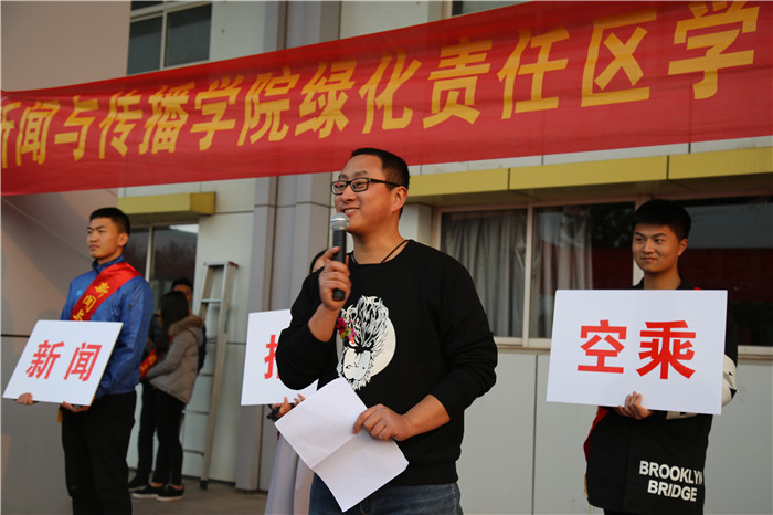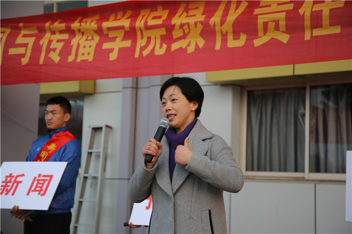 启动仪式上,辅导员老师孙文宣读了学院的活动文件,向各专业明确了各自的责任区域,公布了各专业划定的清扫范围,要求来自新闻、广告、摄影、播音与主持艺术、空乘、动画、网络与新媒体等七个专业的同学分片区认领校园中的指定区域,维持其日常的干净整洁。随后,宋静作动员讲话,她从活动的性质与意义,学校的目的与期待,学院的要求与提醒三个方面进行动员,她表示这是一种青年志愿者服务活动,尊重学生的意愿与选择,不做强制性的要求。学校举办这项活动的目的,是希望通过义务劳动的号召,让每一位学生树立“安师大是我家,作为美丽校园建设的主体之一,我有责任、有义务去爱护她”的意识,希望同学们都能够积极地去维护校园环境,让校园“一直美下去”。同时,学校也借此机会希望能在学生群体中宣扬“热爱劳动,强健体魄”的良好习惯,督促同学们走向室外,亲近自然。学院将责任区分给了七个专业进行维护,她希望各专业同学发挥聪明才智,争取将义务劳动做出亮点,做出特色,倡导在各专业间形成良性的竞争意识,在年级之间打造“传帮带”的积极氛围,充分调动各专业同学的主动性。宋静最后也特别强调,希望广大同学们在享受春光、感受劳动乐趣的同时,要虚心向绿化老师学习劳动工具的使用方法,熟悉地形,将保护自身安全牢记心间。