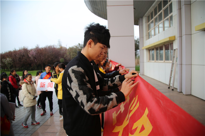 启动仪式接近尾声时,在场师生共同参与了签字仪式。各位同学纷纷在横幅上郑重地签下了自己的名字,并领取了院学生会准备的劳动手套。各专业队伍在领队同学的带领下前往各自负责的草地与走道熟悉环境,院领导老师也来到学院指定区域查看,并与正在义务劳动的同学们亲切交流。