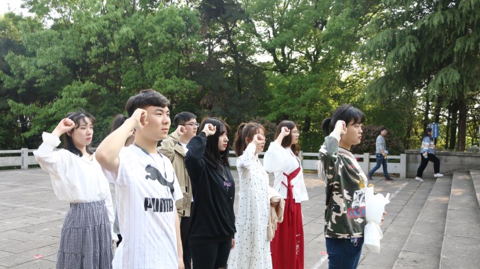 4月13日下午,为迎接“五四”青年节的到来,加强班级文化建设,2017级动画二班团支部在团支书的带领下开展了纪念五四运动100周年主题团日活动,同学们在芜湖烈士陵园,缅怀革命先烈。