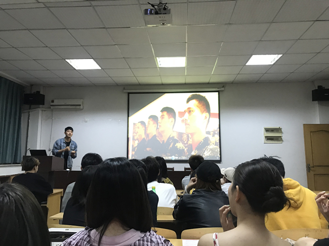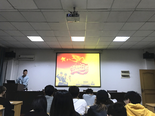 2018级播音专业退伍复学在读学生姚想、王仁强、徐敬贺分别走上讲台,从新兵连训练、比武拉练、部队兄弟情等方面大家讲述了在部队的生活经历,帮助大家认识部队、了解部队,弘扬了参军爱国的正能量,激发了同学们投身军营的热情。