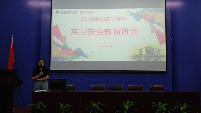 6月3日下午,2016级新闻、网新专业就暑期考研和实习留校的安全教育召开了主题班会。辅导员张雁老师主持,2016级新闻学专业全体同学出席。