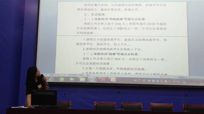 就新学年贫困生认定工作,张雁将《关于做好我校2019-2020学年家庭经济困难学生认定工作的通知》(校〔2019〕23号)仔细讲解,对今年申报程序的变化进行了强调,她指出,申报的同学一定要实事求是的填写相关材料,以免对自己的征信产生影响。