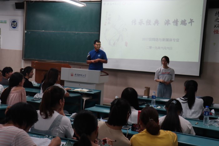 为丰富同学们的课余生活,缓解即将到来的考试周复习压力,2017级网络与新媒体专业于6月6日晚在205030开展了趣味端午活动。本次活动由班长赵柳明负责主持,全体同学参与。
