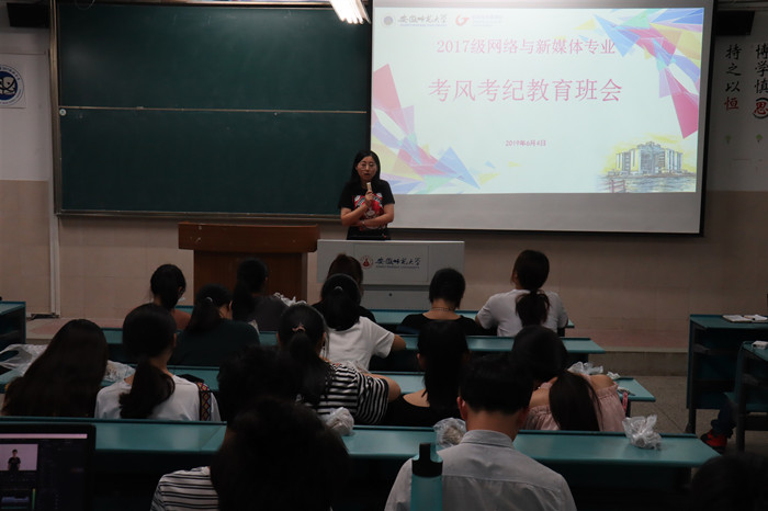 为增强同学们的安全防范意识,提高同学们的安全防范能力,保障同学们度过一个期末和安稳快乐的假期,2017级网络与新媒体专业在教室2050304开展了考风考纪暨暑期安全教育主题班会,会议由辅导员张雁主持。