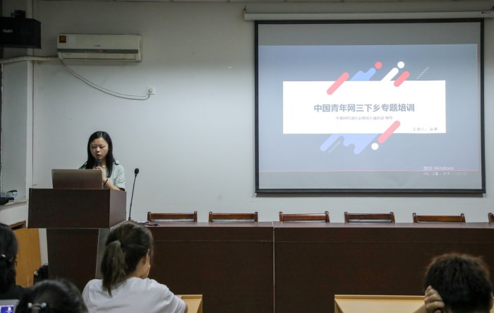 谷澍就中国青年网校园通讯站为例进行了投稿指导。栏目定位部分,谷澍列出“三下乡”官网投稿五大重点栏目,并提醒所有实践团队必须在官网进行团队信息报备。稿件要求方面,她重点讲解了文字稿要求,并介绍“活动稿三把斧”:即故事性、人物采访和细节描写。同时,她也将图片稿、视频稿的要求列举出来,整体内容清晰明了,便于各团队代表整理学习。