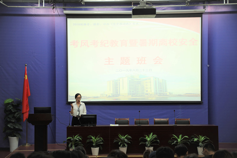为进一步端正考风、严肃考纪,强化暑期离校安全意识,6月23日晚,2018级播音、摄影、动画(含中韩动画)专业的全体学生在教学楼2010307召开了考风考纪教育暨暑期安全教育主题班会。班会由“考风考纪篇、暑期安排篇、离校安全篇”三个篇章组成,会议由辅导员老师孙月婷主持。