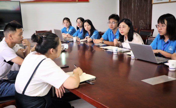 当然,实践的开展也离不开学院的支持与宁国市政府的配合。早在6月14日,团队部分成员到达宁国市政府,提前与当地团市委副书记钱锟、新闻办主任胡起交流实践主题。两天的踩点活动中,团队还实地考察了实践地点仙霞镇,与仙霞中心小学校长李蜀商讨了支教地点、招生及相关工作;与党委副书记刘道林进行了调研工作的对接,从而细化了调研选题。