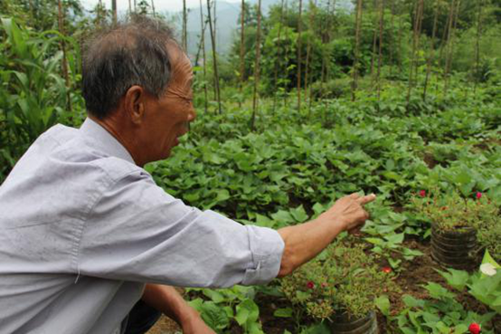 沿着山路而下,遇到了汪大权和他的菜园。红薯、花生、方尾蕨,大豆、南瓜、八月炸,八角、紫薇、望春花,豇豆种在路边,丝瓜种在里面,玉米种在中间;草皮种在左边,樱桃种在右边,板栗种在中间。南瓜想开花就开花,冬瓜想结果就结果,太阳花想开成红的就开成红的,想开成黄的就开成黄的,一切都自由得很,汪大权不管,在他眼里就没杂草,整个菜园的绿满到溢出来。“三月份,映山红就开了,山上红一片”,“这是六月雪,是盆景,长得像个小罩子”,汪大权的菜园就是一个植物青山。“山青水秀,鸟语花香”,他用这八个字概括了他坐拥的植物江山,万景万物,应有尽有。青山人都有自己的后花园。