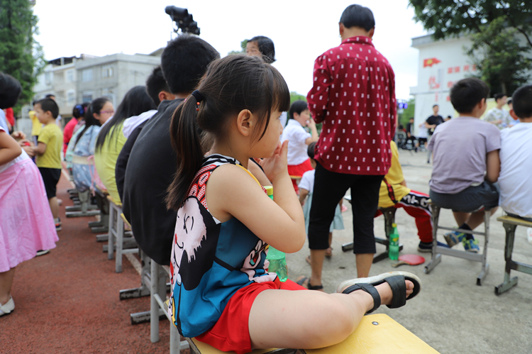 提起这些年学校的种种变化,孩子们的眼睛都是明亮亮的。今年十二岁的王佳欣正在光荣中学上初一,而光荣小学正是她的母校,暑假时听说这里在办爱心夏令营,便在爷爷奶奶的陪同下报了名。她告诉记者,爱心夏令营去年就在这里举行过,但当时的她刚刚小学毕业,去了南昌和远在外地的父亲团聚,便没有参加。今年的夏令营她参加了篮球班,晚上的结业演出将会和其他男孩子一起表演篮球。在等待汇演开始前,王佳欣带着记者来到操场各个角落,向记者描述了教室、食堂和学生浴室目前的情况。作为毕业于光荣小学又在光荣中学上初一的学生,她亲眼见证了学校这些年的变化,也深有感触。
