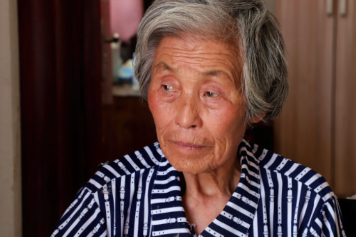 胡长贵的母亲杨可如今年已经78岁了,一头银发有些发灰,及耳的长度,却没有那么整齐,有些乱蹋蹋地堆在脑袋上,脸色蜡黄,身形清瘦。他母亲坐在门口,身体倚斜在轮椅上,头有点歪,左手肿了一圈,颜色仿佛雪地里埋着半截的紫薯。双腿已萎缩得只剩皮包骨架,一只搭在脚下的踏板上,一只无力地垂在半空中,眼神还算有点光,只是总是紧锁着眉头,不时又看向远方,一会儿又将脑袋贴在轮椅上,作一个短暂的休息。杨可如是两个月前得的脑梗,之前身体也还算硬朗,田地里的活计都是她帮着长贵干的,锄草摘茶、洗衣做饭之类,都能替儿子贵分分神。不过身体无恙的时候,抽烟喝酒总是不断,再加上积劳,身体也就被熬成了这般。杨可如合了合嘴唇,身体扭动着:“我要去床上躺一会儿。”长贵便将杨可如轮椅上的腰带打开,鞋子脱下,接着打横抱起,将她清瘦的身躯放在木床上,接下来盖上薄被,整个人就完全被裹在被子中了。“你可热?”“不热。”“要起来叫我。”过了大概一个小时,杨可如在床上扯着嗓子:“长贵啊,我起来!”。
