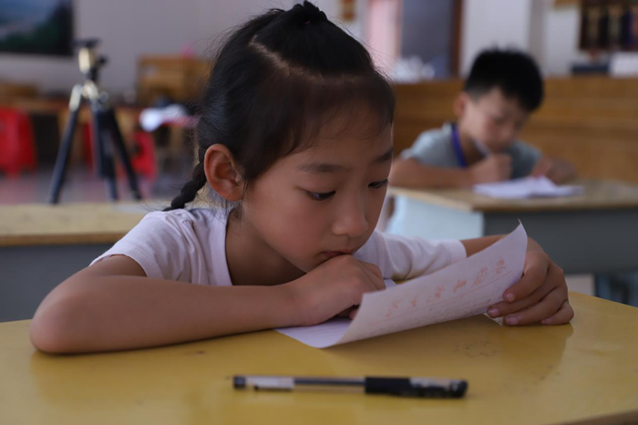 “来,这句该你唱啦”,这是支教的第一节音乐课,第一首歌便是《虫儿飞》。教授音乐课的实践队员——露露老师将话筒递给了班里的小霸王——皮皮。皮皮真的姓皮,也确实是最皮的学生,几次三番地扰乱课堂秩序,亮亮的眼睛一副天不怕地不怕的样子,当话筒传到他的手上,大家都以为即将迎来搞怪歌声的时候,皮皮却一把推开了话筒,将头埋了起来。