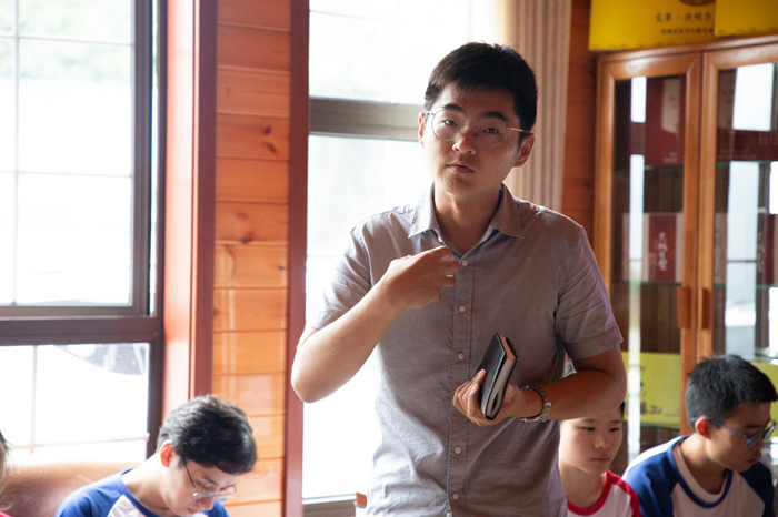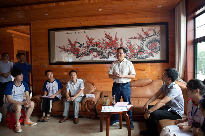 在展示完团队成果之后,带队老师刘熠上台发言。他用了三个关键字阐述十天的实践活动。第一,“体验学习”,团队队员通过与青山镇群众的交流体验学习当地的生活态度,也在实践过程中发现每一位团队成员的优点,互相学习;第二,“合作共赢”,在青山镇政府的支持下,团队调研工作和支教工作开展顺利,团队也会尽己所能将青山镇的故事传播出去;第三,爱与希望,他希望传媒素养普及培训班的支教能在孩子们心中种下新闻与传播的梦想,而调研过程中青山镇政府和群众的关爱也让团队充满前进的希望。最后,刘熠用“青山向上走”作最后的总,他希望青山镇能够蓬勃发展,也希望各位队员在之后的学习中遇到山一样的困难依然要向上前进。