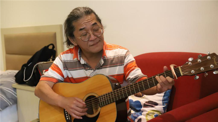 实践队员在外国语学院的教室里对大滝老师进行了采访拍摄,一个矮矮壮壮带着眼镜的男人背着吉他包出现在这里,蓬松茂密的黑白色夹杂在一起的头发扎在脑后。脸上一直挂着微笑,非常符合日本动漫长久以来给人们塑造的日本老人形象。在日语专业课上,大滝老师用日语夹杂中文给大家上课,通过情景模拟传授知识,教室里欢笑不断。