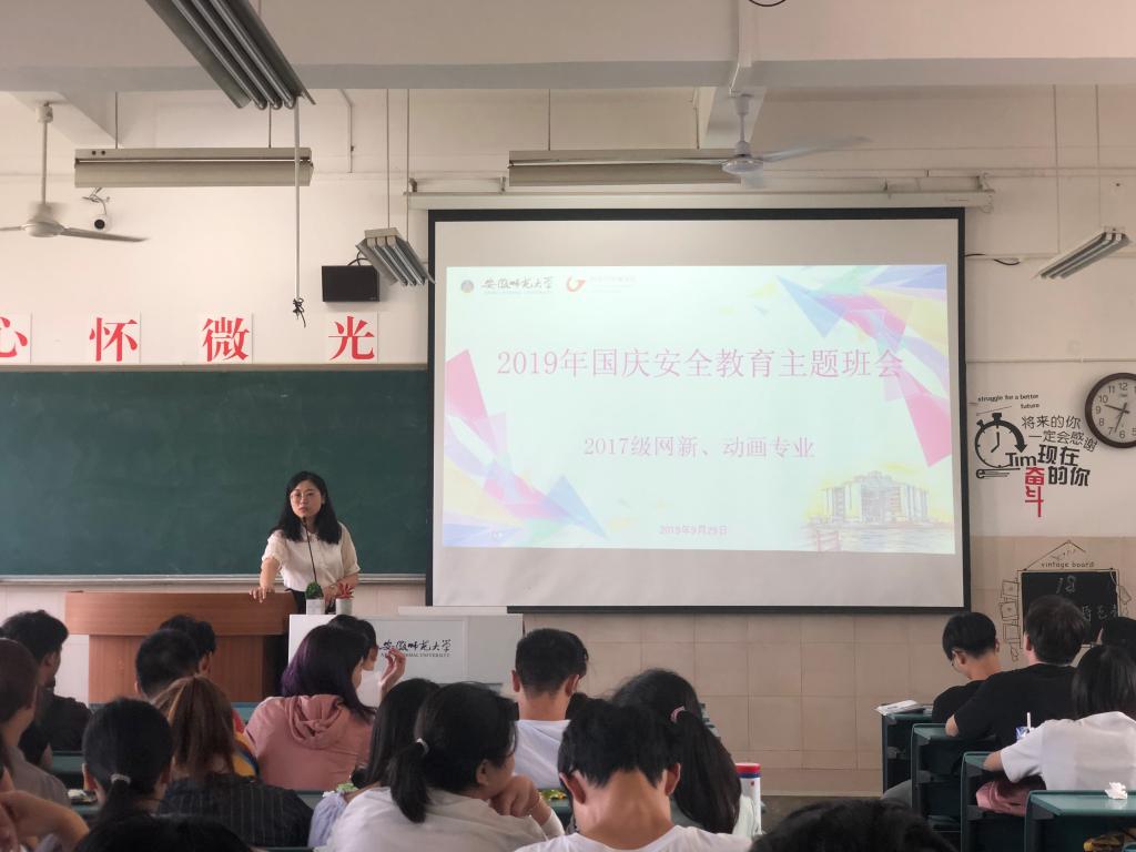 9月29日,17网新、动画专业在教室召开2019年国庆安全教育主题班会。
