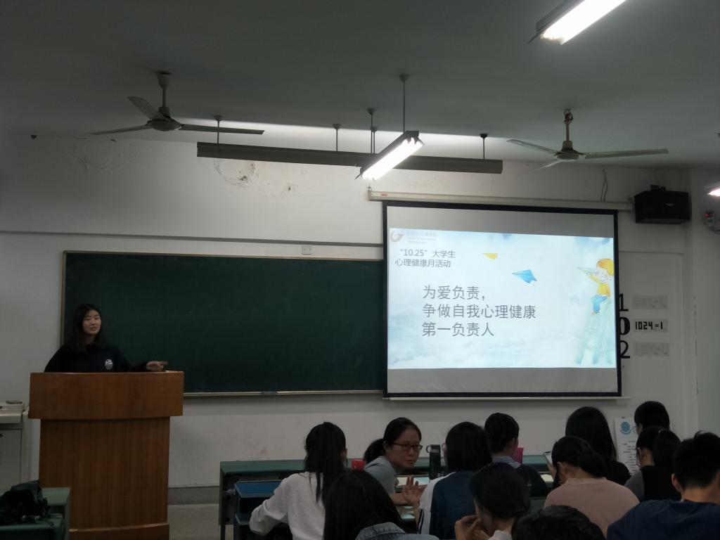 刘静怡向大家阐释了心理健康的重要性,呼吁大家在大学生活中重视心理健康,及时发现消极倾向,努力创造条件,将思想中的消极情绪转化为积极情绪,为爱负责,每个人都应该是自身心理健康的第一负责人。