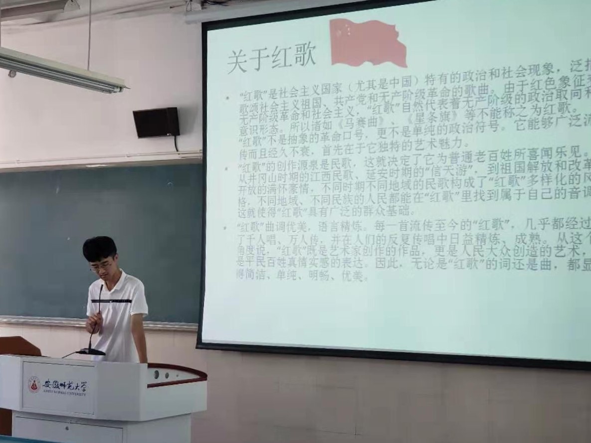 各班级在精心组织安排下,积极开展学习校歌团歌、回顾校史团史的班会课。校歌朗朗上口,用对仗工整的歌词和慷慨宏伟的曲调唱出建校之情。同学们观看校歌视频后,认真学习其悠扬曲调,品味其历史韵味。在新生代表带领同学们练习校歌的演唱后,辅导员为同学们讲解歌词的由来,感受歌词的意义。团歌寓意深刻,体现了浓厚的时代感,曲风既展现了青年人的活泼又彰显着共青团的庄严。团员们对学习团歌展现出极大的兴趣,并用歌声证明了他们为身为共青团员而骄傲。此次活动中,同学们以歌抒情,传递出自己对学校、共青团的深情,流露出最诚挚的情感。军训结束后,同学们依旧不忘军情,在班会上齐唱《我和我的祖国》、《打靶归来》、《强军战歌》等热血军歌,同学们沉浸在嘹亮动人的歌声中,在无意间也增强了班级的凝聚力。