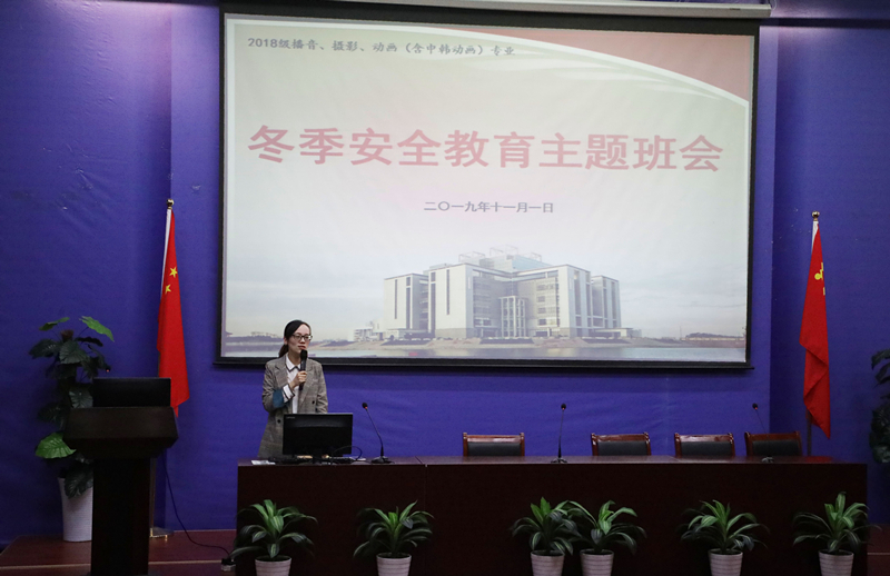 为进一步强化学生安全意识,提高防范能力,消除安全隐患,11月4日下午,辅导员老师孙月婷组织2018级摄影、动画、播音、中韩动画专业全体同学在教学楼2010307召开2019年冬季安全教育主题班会,严抓并认真落实学生安全教育管理工作。