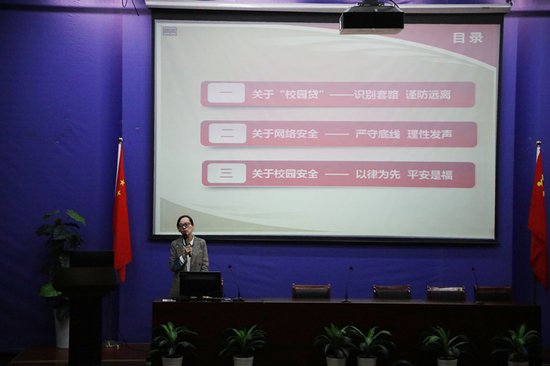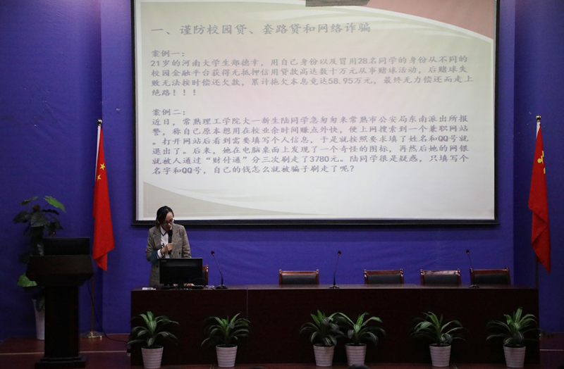 主题班会从三个篇章展开探讨:关于“校园贷”---识别套路,谨防远离;关于网络安全---严守底线,理性发声;关于校园安全---以律为先,平安是福。孙月婷首先通过分享两个校园真实发生的典型案例,为同学们讲述了常见校园贷、套路贷和网络诈骗的主要形式,从日常生活中不小心误借校园贷、随意点击部分网站或链接窗口以及网购退款、充值返利、购买游戏装备回扣等诈骗方式入手,向同学们科普如何严防“套路贷”、网络诈骗陷阱的方法,让同学们形成清晰认识,并树立自我保护意识。孙月婷还详细介绍了党和国家的宗教政策及大学生网络文明和信息安全等内容,要求同学们要严守底线,讲规矩守纪律,在网上要理性发声,不传谣、不信谣。