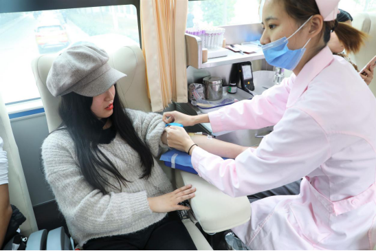献血活动开始后,摄影班同学有说有笑的踏进献血车,车内气氛轻松而愉快。唐敏同学说:“这是我第一次无偿献血,能为社会做贡献,我挺自豪的。毕竟是第一次献血嘛,紧张肯定是有的,但更多的是激动。”同学们互相打气鼓劲,用轻松的话语缓解同学被采血过程中的紧张。血站人员也为所有献血的同学准备了葡萄糖水,并仔细交代了关于献血后的注意事项。