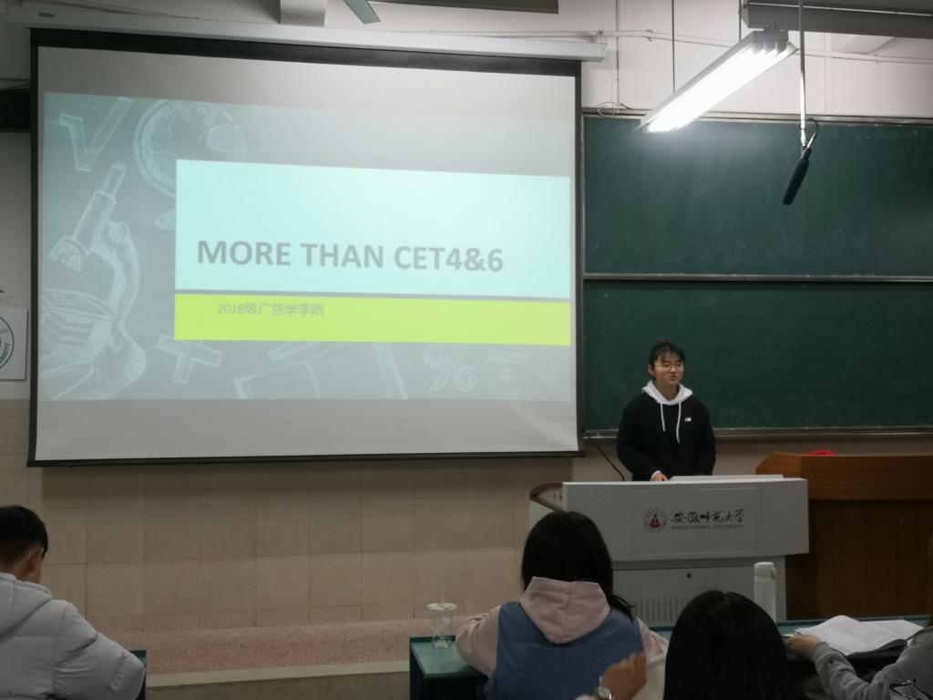 距离2019年下半年的英语四级考试还有不到一个月的时间,但2019及新闻与传播学类2班的同学对即将到来的四级考试既期待又陌生,不懂得问题还有很多:题型是什么、时间怎么安排、听力怎么听等等。为了解答同学们的疑惑,在二班班委一个多星期的精心筹备下,班级于2019年11月21日在2050302教室开展了英语四级交流分享会。本次活动邀请了2018级广告学专业李娇为大家做英语四级考试的专题交流。