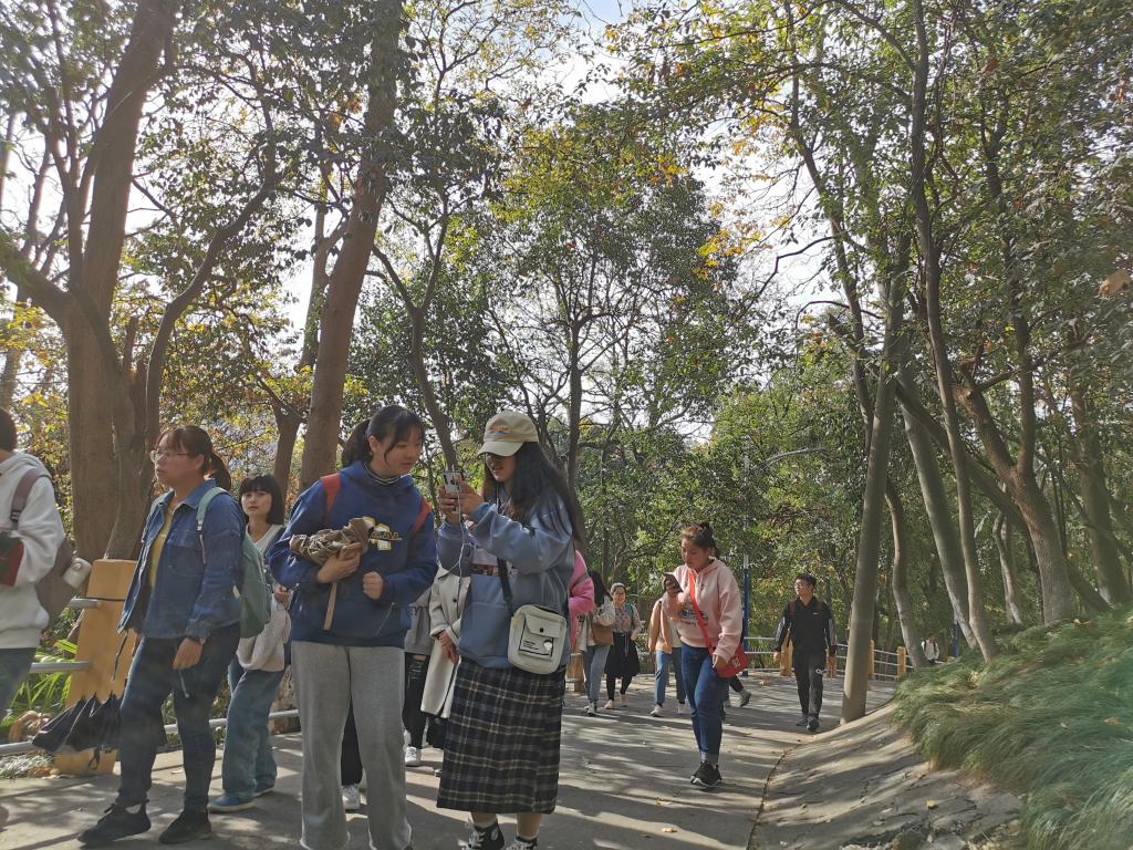 赭山校区不仅人文历史底蕴深厚,明信片一样的风景更是俯拾即是,让人如置静谧的丛林。同学们踏着秋,爬上陡峭的楼梯来到了皖江中学暨省立五中旧址,两位班长为大家娓娓道来此处的历史渊源,耳畔是左侧音乐学院的乐曲声,大家放慢了脚步,用心感受着世外桃源般的宁静时光。俗话说“上山容易下山难”,堆满了落叶的鹅卵石小路易跌倒,同学们主动互相搀扶,安全地走下了山,友谊似一泓清泉涌流在烈日下,流入同学们的心中。下山后班长就立即点名确认37名同学无人掉队,短暂休息后,同学们走回了“我爱师大”的草坪上合影留念,自信、阳光的笑容绽放在阳光下,“swag“的姿势是青春的表现,空间的距离此时不再重要,三个班级的同学都感受到了家人般的温暖,银杏树中的老校区历史在班长们的讲解下熠熠生辉,在一片欢声笑语中此次团建活动圆满结束。