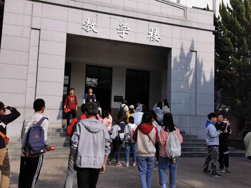11月16日上午9时许,全班37名同学在西门集合,他们个个热情高涨,整装待发。由班长侯博文带头,安全委员吴迪殿后确保37名同学都乘上26路,来到了赭山校区,教科院心理学1班和2班在田家炳教育书院门口热情迎接了全班同学。半日的团建活动也就从这里开始了,教学楼中的教室以木制为主,古色古香的历史气息扑面而来,大家都被安静的氛围所感染,自觉地放轻脚步,在走廊中看着学长学姐们埋首学习的认真模样,眼神中流露出钦佩的坚定目光。