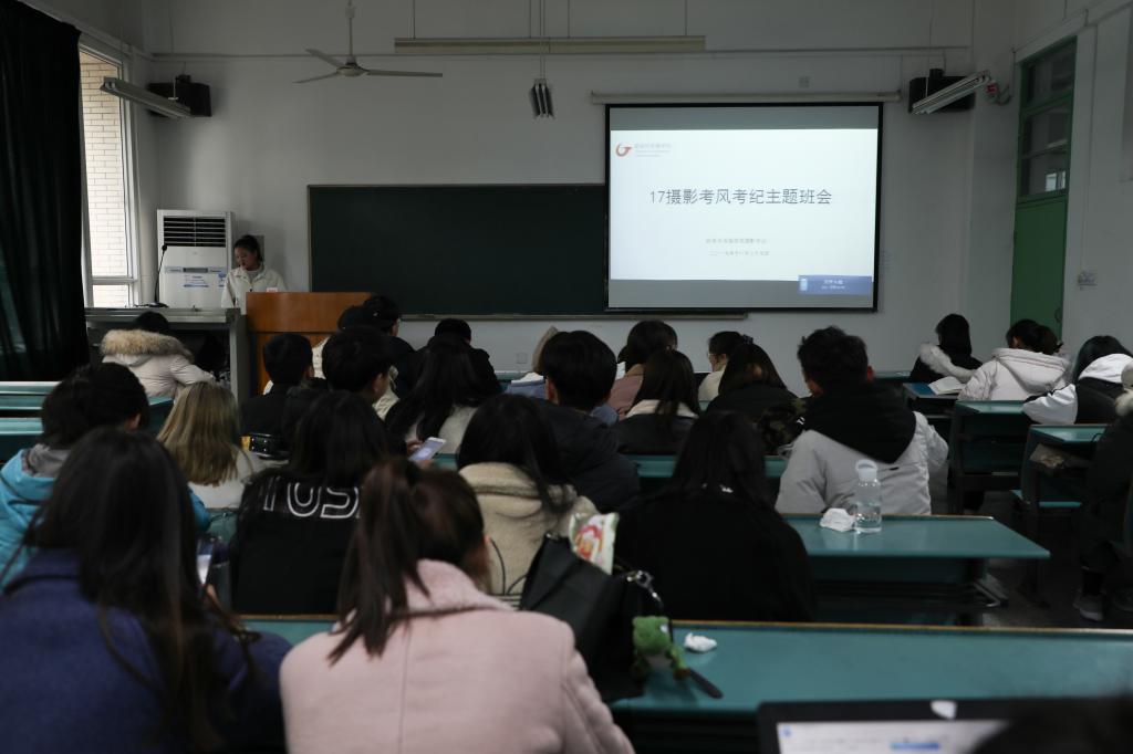 为加强冬季安全教育,增强学生诚信意识,保障学生安全稳定底线,12月3日下午,2017级摄影专业在行知楼2070103教室召开了冬季安全教育主题班会暨考风考纪主题班会,班会由学习委员姜晓彤和安全委员崔晓蝶主持。