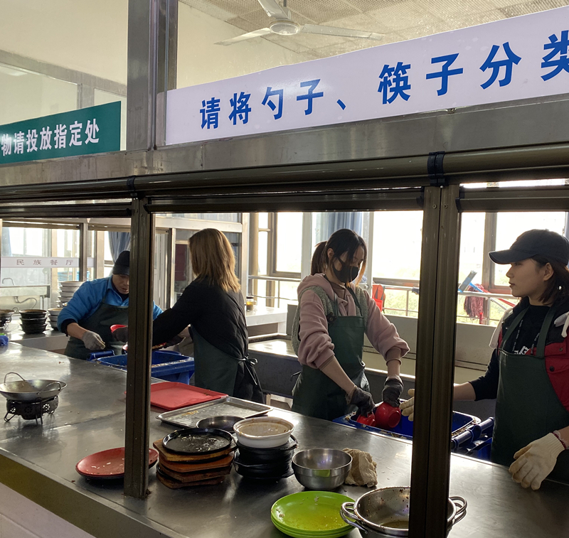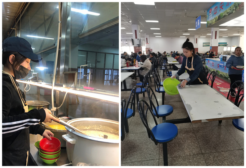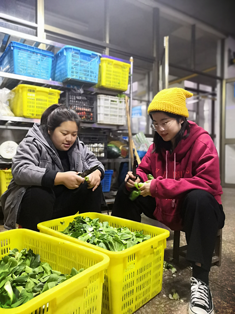 偌大的食堂里,也处处活跃着2018级播音与主持艺术、摄影、动画学子的身影。当清晨的第一缕光芒洒向校园时,同学们就在食堂叔叔阿姨们的带领下忙活了起来。挑菜、择菜、洗菜,同学们仔细耐心地按照食堂阿姨们的要求和标准忙碌着;擦柜子、擦桌子、拖地,这些沉重的体力活同学们做起来没有丝毫抱怨;打饭、刷卡、水瓶整理,同学们微笑以待、热情相迎、礼貌询问,获得了食堂阿姨们和就餐同学们的一致好评。大家一直从晨曦微露忙到余晖向晚,却仍然乐此不疲,更从中体会到了食堂职工人员为广大师生提供良好就餐环境的辛苦不易,感悟到“每一份劳动的成果皆是辛勤的付出,每一份成品的背后皆是汗水的凝结”的内涵。此外,参与食堂劳动的同学们也借机发起“光盘行动”的号召,倡导勤俭节约,反对铺张浪费,劝勉大家珍惜粮食。