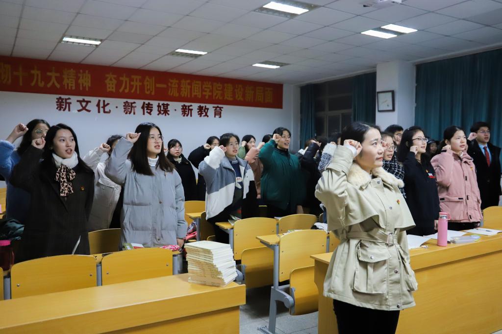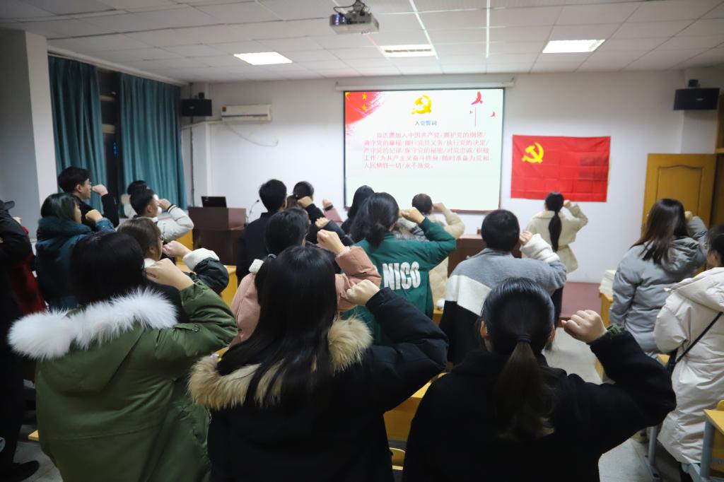 12月27日晚,2017级本科生党支部在学院四楼会议室举行预备党员入党宣誓仪式大会并进行理论学习。支部全体党员参加,会议由支部书记张雁主持。