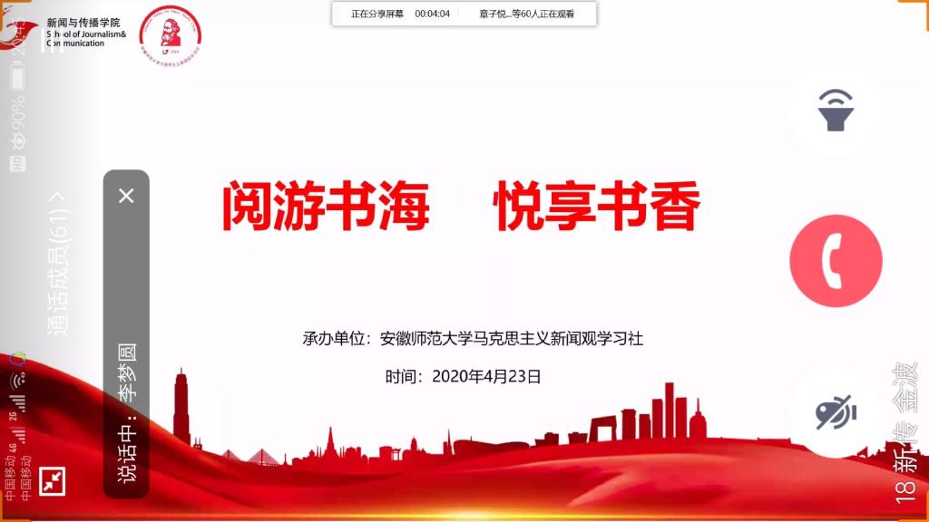 书香四月,在“书香校园”读书创作活动浓厚的阅读氛围中,马克思主义新闻观学习社于4月23日开展了“阅游书海,悦享书香”线上读书分享会。近百名社员和德赢AC米兰合作伙伴的领导老师们一起在网上进行了热烈的读书分享。