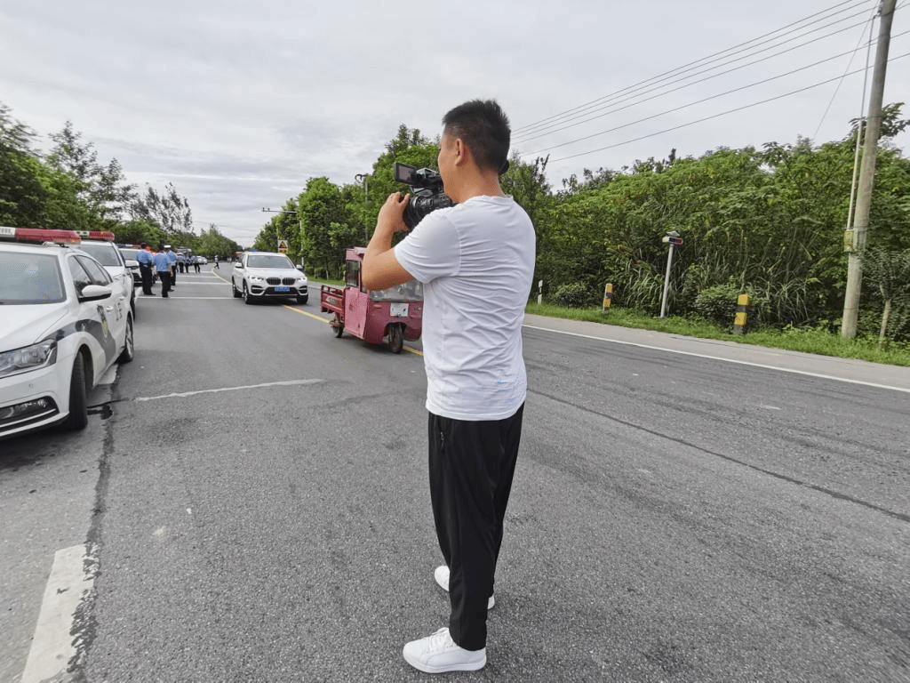 图为李杰在拍摄警车