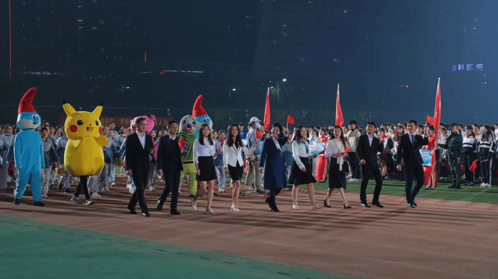 每年一度的学校田径运动会,都是一次师生同台、比学赶超的大比拼,也是一个增进友谊、展示风采的大舞台。运动会开幕式于10月27日晚在花津校区北体育场举行,来自18个学院的运动员汇聚于此,共同见证这一体育盛事的开启。与往年不同,本次运动会开幕式选择在晚上进行,灯光辉煌、彩旗飘扬,现场氛围热烈而欢愉。
