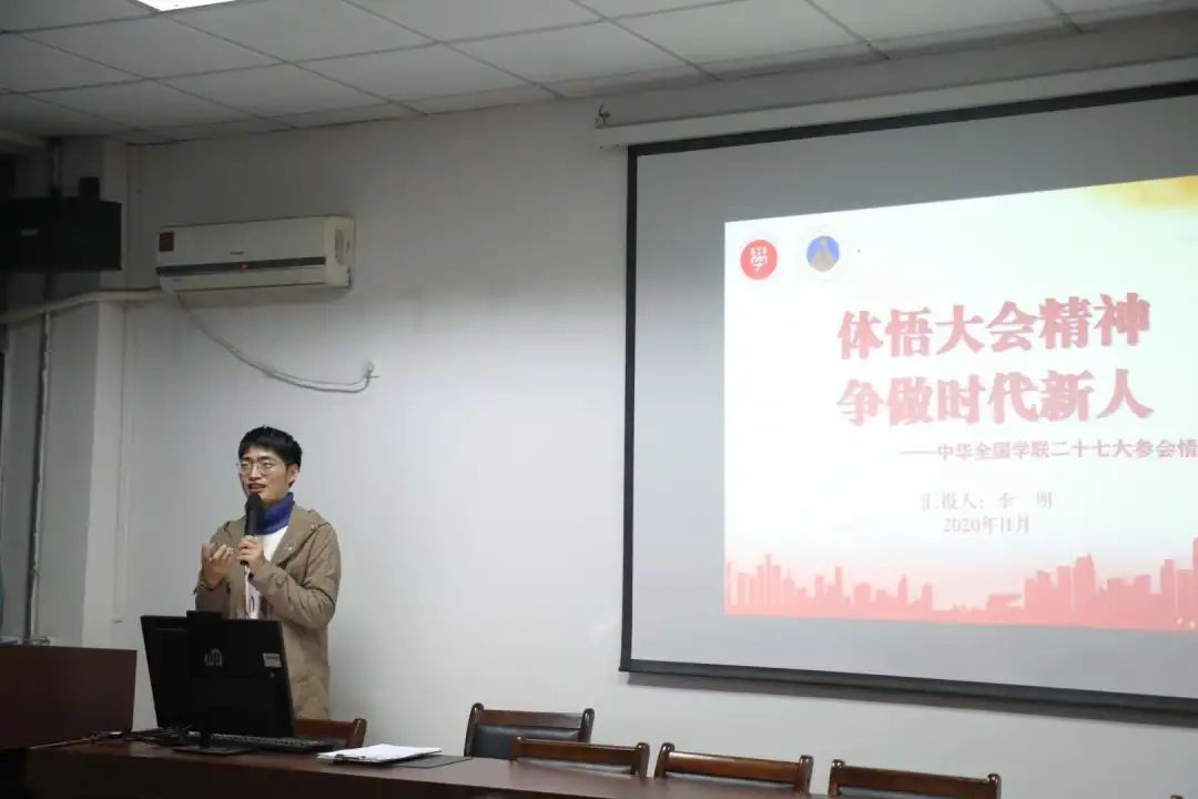 会议开始前,学习部陈奕宏对本次全国学联二十大的相关内容作了简要的介绍,为同学们更好地学习大会精神提供了帮助。