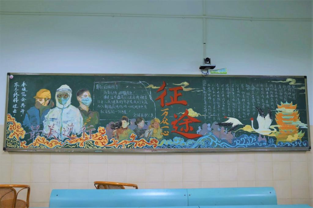 据悉,本次板报围绕三大主题展开:“弘扬伟大抗疫精神”、“纪念中国人民志愿军抗美援朝出国作战70周年”、“学习十九届五中全会精神”。各班需要从三个主题中任选一个主题进行板报制作。各班板报紧扣主题,设计丰富多样,给最初单调的黑板带来了不一样的色彩,充分展现了新传人的青春活力。19级播音与主持艺术班板报“抗击疫情,从我做起”以象征希望的救护车、医生、针管和桃花为背景,主要介绍了疫情传播途径,提供了防范小贴士,提醒同学们对待疫情一定不能松懈。19级摄影班板报“征途”用绘画先声夺人,让评委老师和同学一进门就被“最美逆行者”的人像所吸引。“寒冬终将过去,春暖花会再开。”板报满是同学们对全体逆行者的感谢。20级新闻传播学类3班板报“感恩有你,盼你平安”画出医护人员、外卖小哥、环卫工人等八种典型人物形象,向抗疫人员表达感谢。近期,十九届五中全会召开,学子们积极学习大会精神,并在黑板报上有所体现。20级新闻传播类1班板报“不忘初心,牢记使命”,以红色调为主,绘制了中国地图、天安门等标志性建筑,简单介绍了会议的内容和精神,向同学们提出了建设美丽中国的美好愿望。各班通过不同主题,全方位表达了自己的爱国情怀。