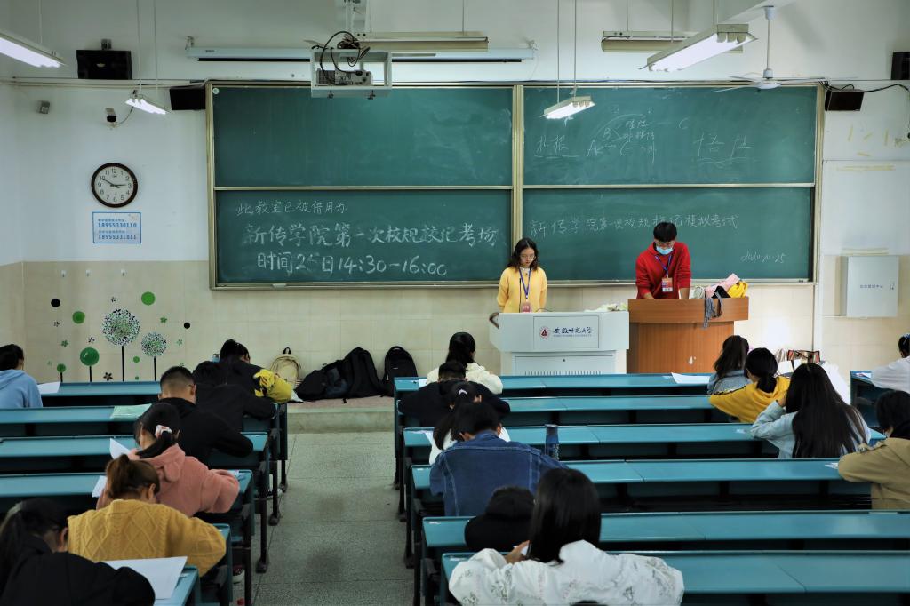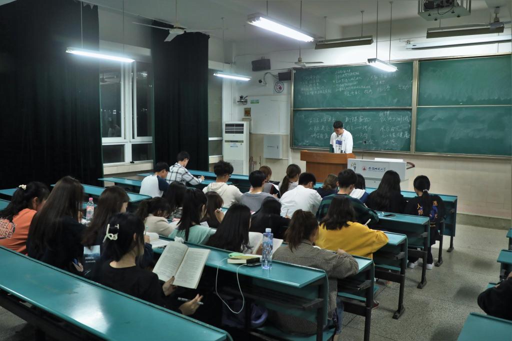 在军训期间,学院便下发了最新版本的《学生手册》供新生学习。为了加强对校规校纪的学习,培养学生自律意识,院团委学生会学习部利用学生晚自习时间在十月中旬先后于行知楼四号楼五号楼开展了校规校纪学习会。由院团委学生会学习部副部长陈奕宏主持,声明了校规校纪考试的重要性以及具体考核方式和重点划分。帮助同学们明确考试方向,更好地复习备战。院团委学生会宣传部也及时在院官方微信公众号“安师大青春新传”上推送相关微信文章,为新生梳理考试重点内容以便查阅,通过线上线下双向模式,介绍校规校级的具体内容。