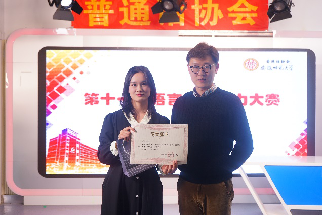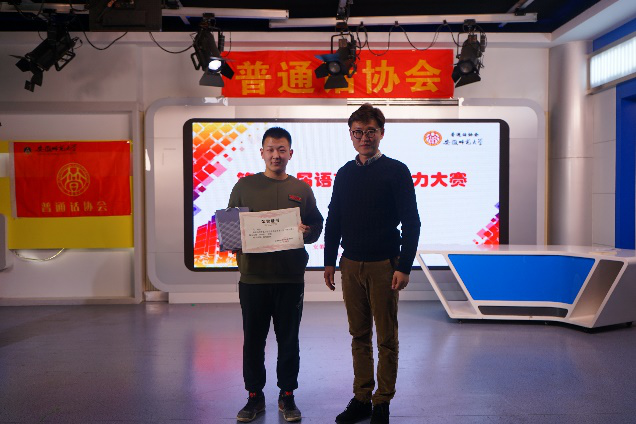 决赛分为专业组与非专业组进行对决。参赛选手各展长才,来自文学院2018级卓越语文专业的王府夺得非专业组一等奖、德赢AC米兰合作伙伴2019级播音与主持艺术专业卜应俏夺得专业组一等奖,由高郡隆老师亲自为一等奖获得者颁奖。