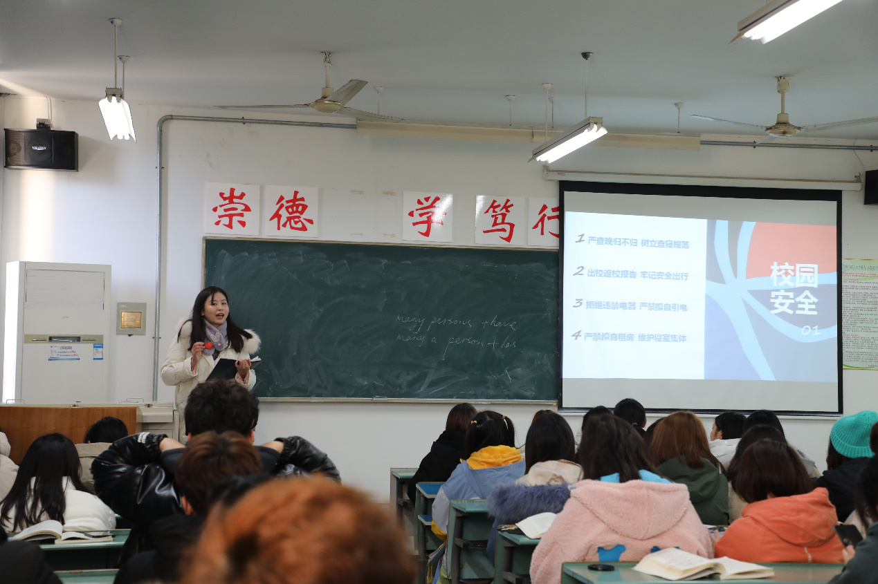 王文君针对安全问题提出四点具体要求:首先是严查晚归不归,树立查寝规范;其次是出校返校报告,牢记安全出行;再次是拒绝违禁电器,严禁擅自引电;最后是严禁擅自租房,维护寝室集体。并给同学们浏览了相关的违纪违规红色文件,以示警醒。王文君强调,深冬到来,每个同学都要做好防寒保暖,拥有一个健康的身体,外出记得戴口罩、预防流感、注重身边的人身安全、交通安全、用电用火安全防范,让我们注重这些身边的小事,拥有一个更加安全的生活环境。提高警惕意识,避免上当受骗,遇事沉着理智。在男女交往方面要慧眼识英雄,自尊自爱避免受伤害。在国家高度关注疫情防控情况的当下,针对同学们的安全,王文君提出了几点要求:一、公共密闭场所应佩戴口罩;二、坚持晨午晚检、“今日校园”健康填报;三、关注中高风险地区;四、离返校请销假和“晚点名”制度,因病请假缺勤登记。会中,还强调了日常管理财务等方面的问题,抵制邪教、封建迷信和非法传销、不良网贷;学习金融安全知识、提防电信诈骗与校园贷等;严禁学生在教学区及公寓区举办各种形式的西方节日聚会或晚会;注意防盗、防传染疾病、防食物中毒、防交通事故以及禁毒防艾。