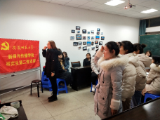 宣誓大会上,全体起立,会议在庄严的《国际歌》歌声中开始。随后,张瑶作为领誓人,面向党旗,带领武婷婷、张玉、张梦霞三位新吸收的预备党员进行了宣誓。